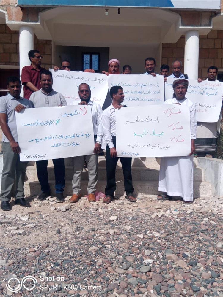 وقفة احتجاجية لأعضاء هيئة التدريس في كليتي التربية والمجتمع بمحافظة سقطرى للمطالبة بحقوقهم