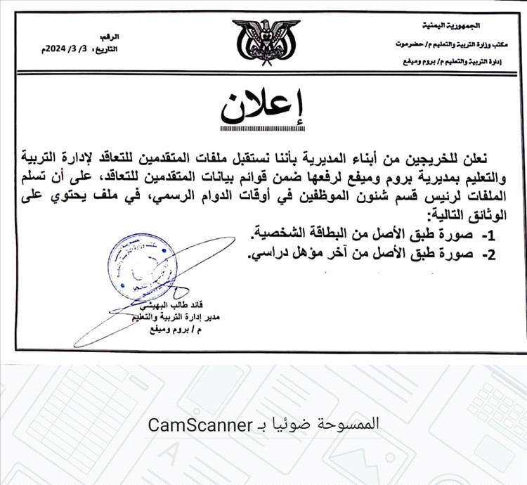 عبرت قيادة الهيئة التنفيذية للقيادة المحلية للمجلس الانتقالي الجنوبي بمديرية بروم ميفع ،محافظة حضرموت ،عن استنكارها الشديد، لما ورد في الإعلان الذي صدر عن مكتب التربية والتعليم بالمديرية ،واعتبرت هذا الإعلان يأتي في اطار التهديد والاستهداف للمعلمين المضربين ،والمطالبين بتوفير حقوقهم ،وهذا حق من حقوقهم ،لثنيهم عن الإستمرار بالاضراب .
