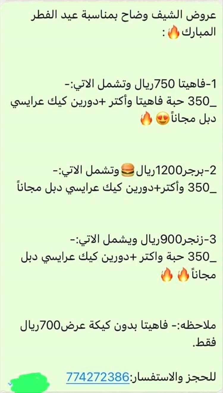 عروض الشيف وضاح بمناسبة عيد الفطر المبارك