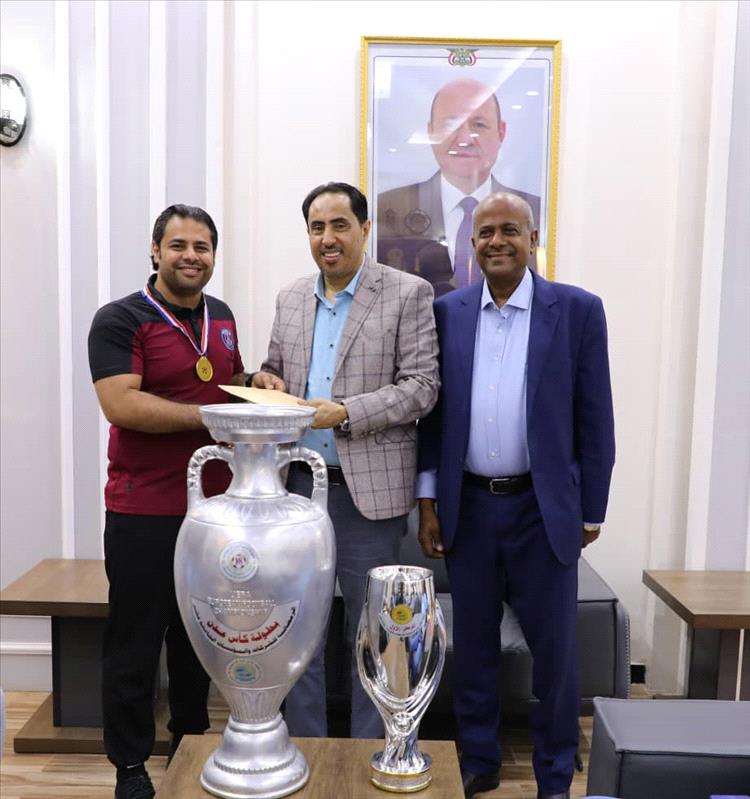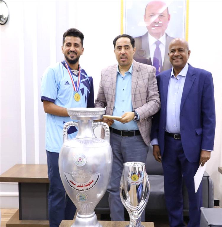 الوزير البكري يكرّم فريق الوزارة المتوّج ببطولة كأس عدن الرمضانية