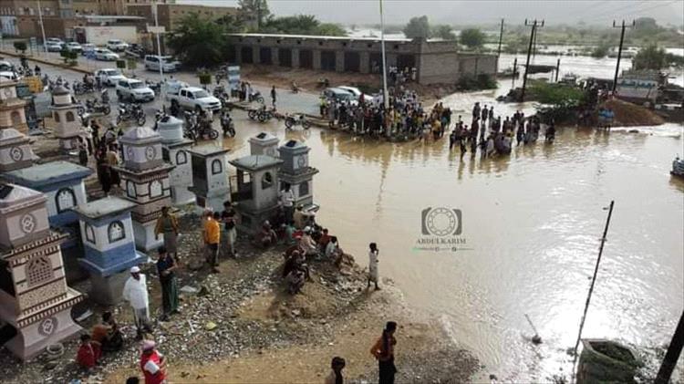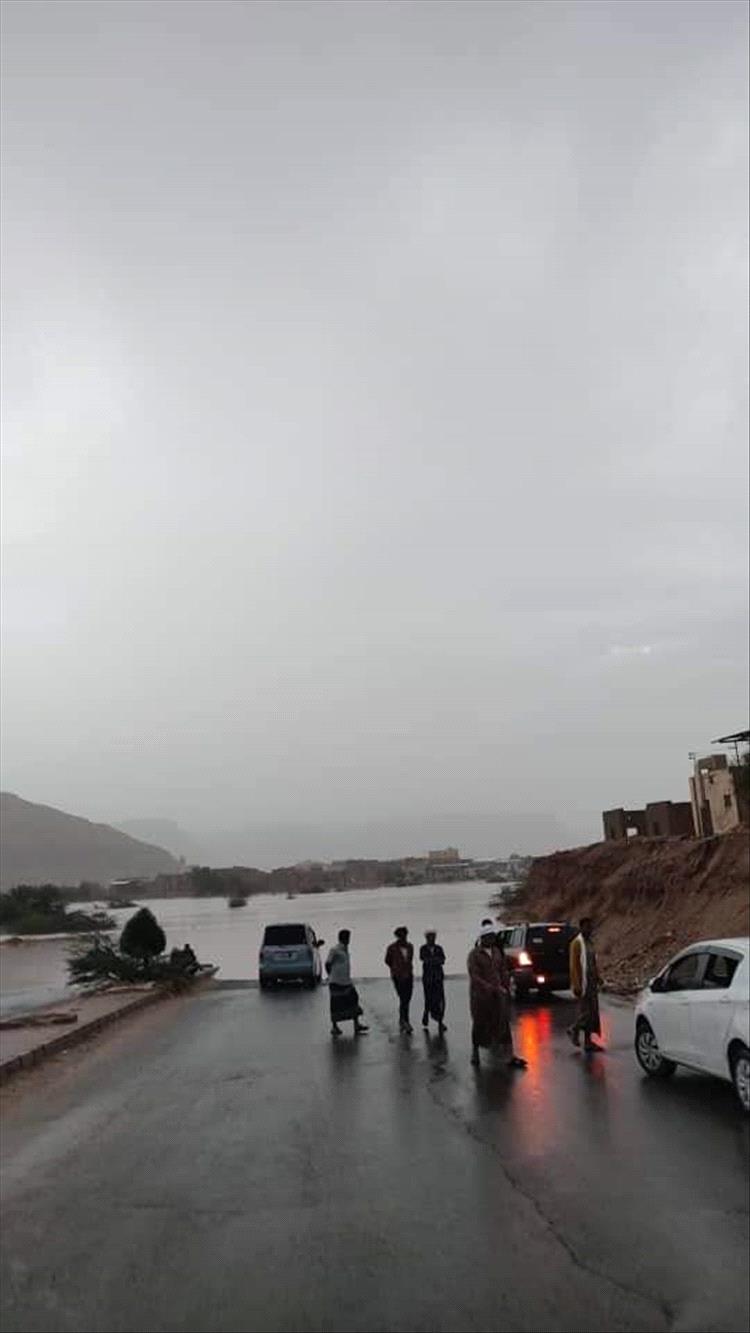 وأظهرت الصور غرق مخرج ثبي بمدينة تريم، وأكدت المصادر أن طريق تريم سيئون انقطع نتيجة ذلك.