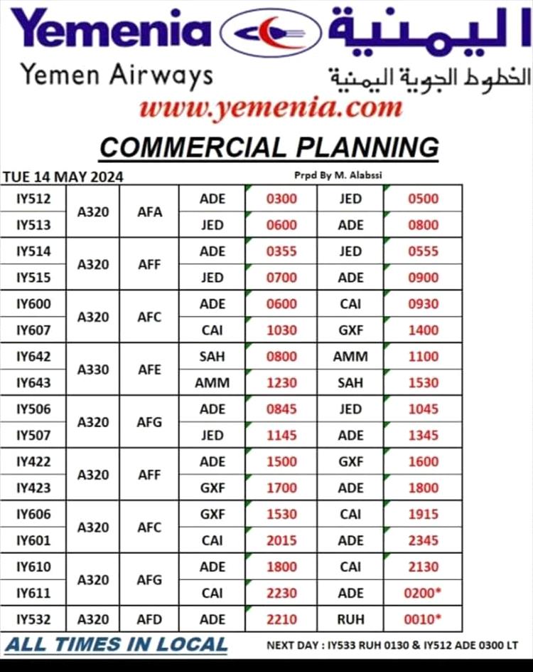 جدول مواعيد اقلاع رحلات طيران اليمنيه ليوم غد الثلاثاء