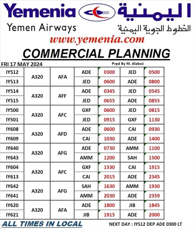 جدول مواعيد اقلاع رحلات طيران اليمنيه ليوم غد الجمعه