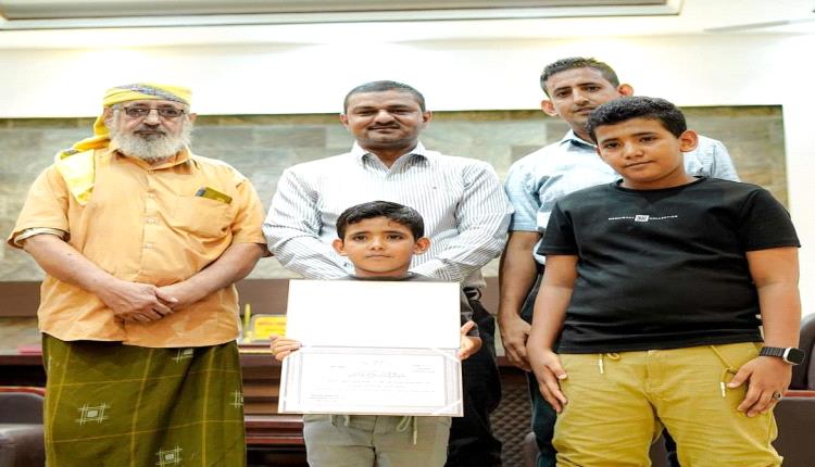قامت السلطة المحلية في مديرية الشيخ عثمان بالعاصمة عدن، اليوم الأحد بتكرم الطفل شعيب عمر المعمري، وذلك تقديراً لأمانته في إعادة مجوهرات لصاحبها.