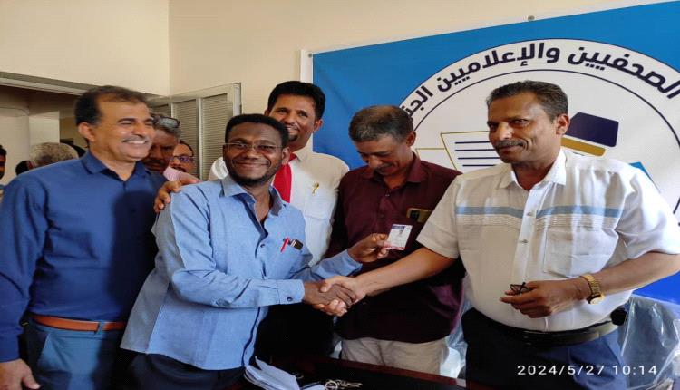 عقب ذلك قام الأخ المحافظ بمعية الدكتور ياسر باعزب والأستاذ محمد ناصر العولقي بتوزيع بطائق عضوية النقابة على عدد من الصحفيين والإعلاميين في المحافظة الءين استكملت إجراءات حصولهم على بطاقة العضوية وصرفت لهم قيادة النقابة بطائق عضوية النقابة .
