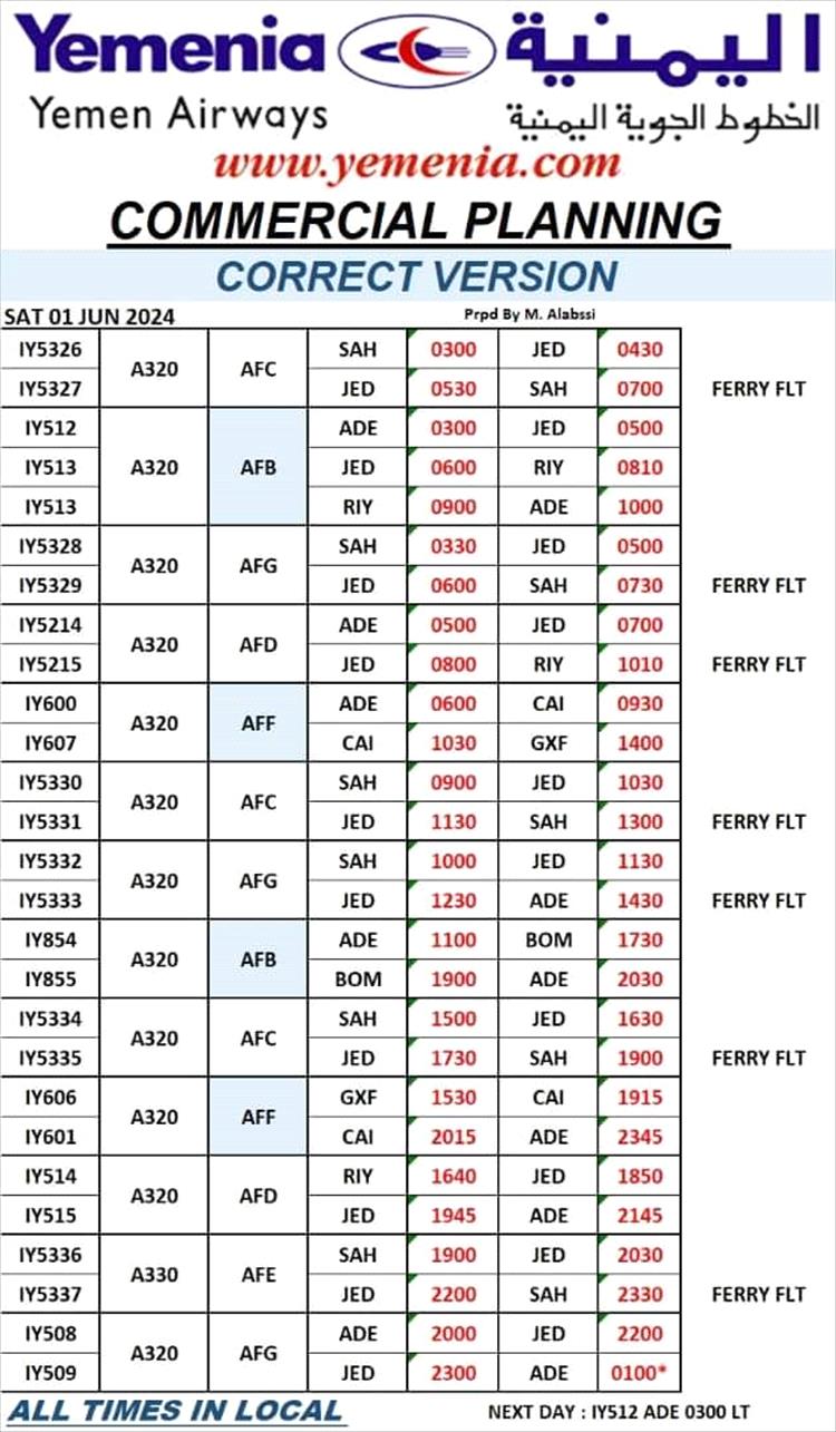 مواعيد اقلاع رحلات طيران اليمنية ليوم غد السبت كالتالي: