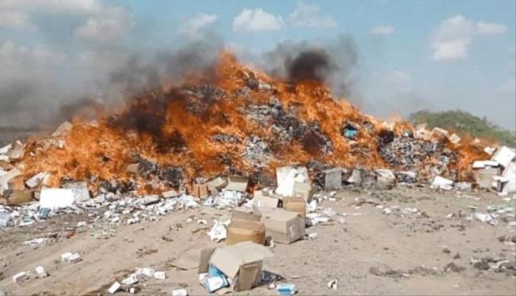 وأشرف على عملية الإتلاف التي تمت في مقلب النعامة، القائم بأعمال وكيل نيابة الصناعة والتجارة القاضية الدكتورة سمية القباطي وعضو النيابة القاضية جيهان الظافري واللجنة المكونة من مدير عام حماية المستهلك فضل صويلح ومدير عام عمليات الوزارة عبدالسلام منصور ومن مكتب الصناعة والتجارة بعدن مدير الرقابة التموينية عمر عباد وممثلي هيئة المواصفات والمقاييس وصحة البيئة.