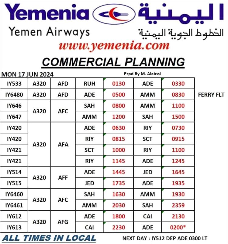 جدول مواعيد اقلاع رحلات طيران اليمنيه ليوم غد الثلاثاء