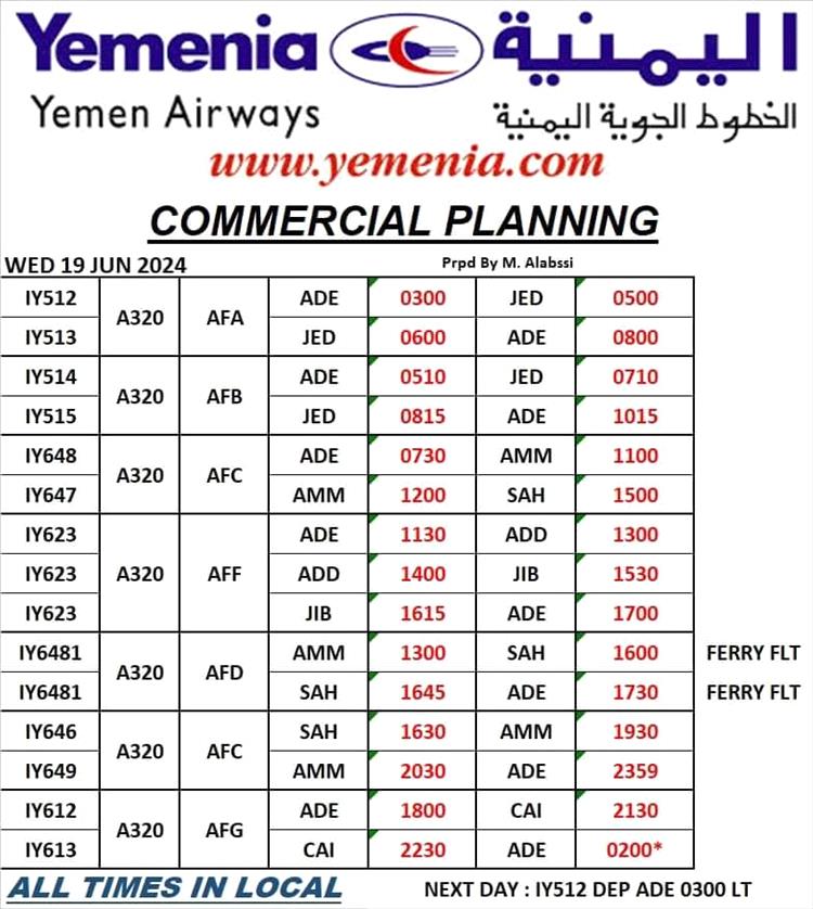 جدول مواعيد اقلاع رحلات طيران اليمنيه ليوم غد الاربعاء