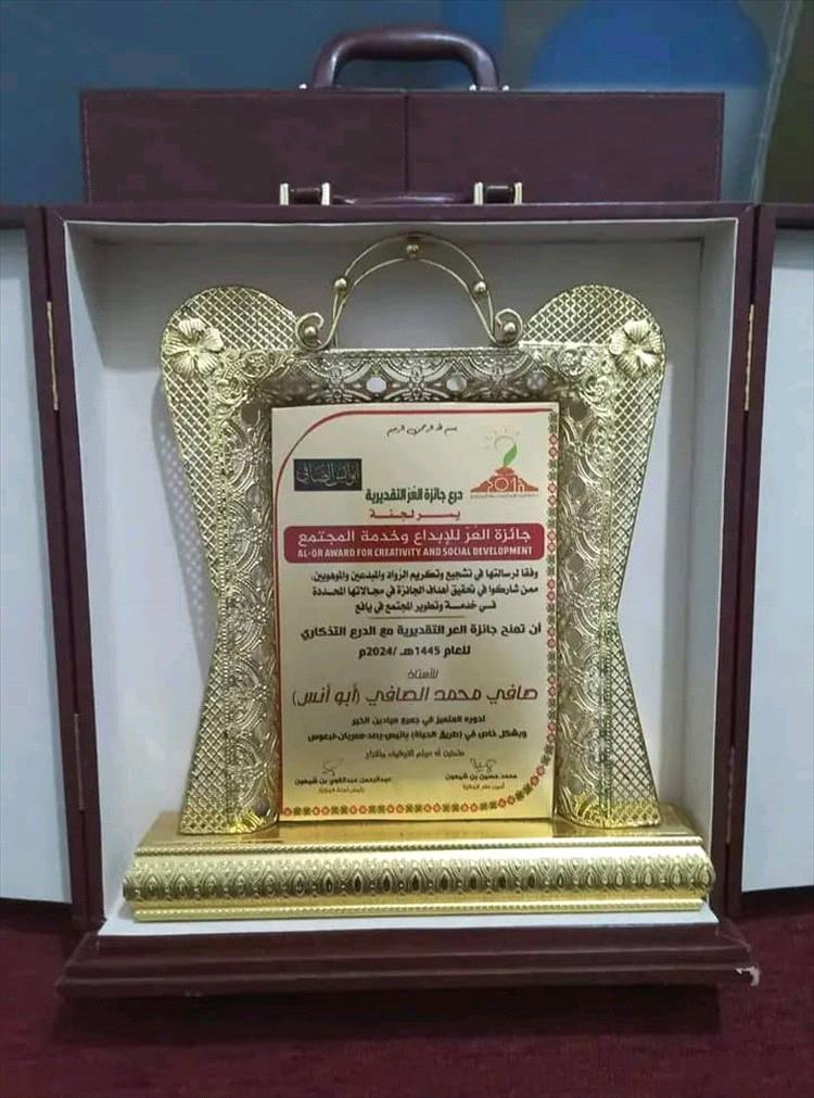 وبدورنا نبعث تهانينا إلى الشيخ أبو أنس الصافي على هذا التكريم المستحق الذي ظفر فيه وذلك نظير جهوده الحثيثة وعطاءه اللامحدود في خدمة المجتمع في الجانب الخيري إضافة إلى سعيه الدائم في ترسيخ قيم المحبة والسلام.