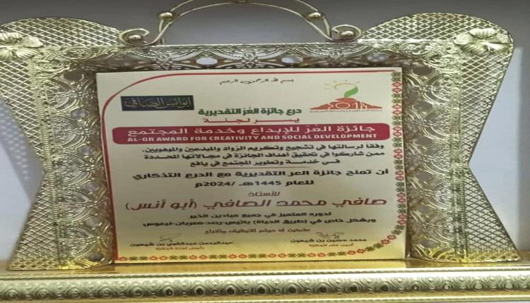 من البوادر الطيبة والأخبار السارة اليوم الثلاثاء في منطقة الموسطة بيافع لبعوس بمحافظة لحج ، تم إختيار الشيخ أبو أنس صافي الصافي ضمن قائمة المبدعين في خدمة المجتمع والمكرمين بجائزة العر السنوية للعام 2024م.