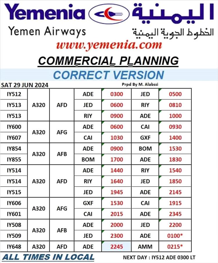 مواعيد اقلاع رحلات طيران اليمنية ليوم غد السبت كالتالي
