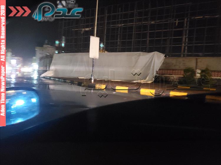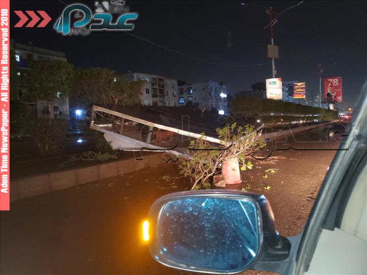 عدن تشهد هطول أمطار مصحوبة برياح تسقط اللوحات الإعلانية وتتسبب بأضرار (صور)