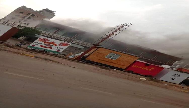 فيديو- اندلاع حريق هائل في دار التحف والهدايا بمنصورة عدن