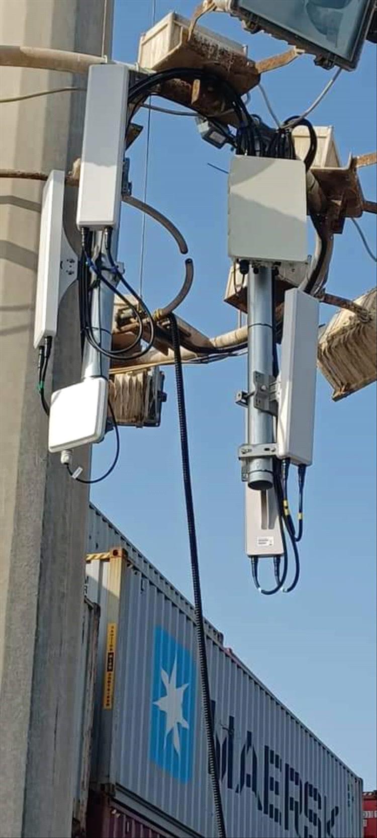 حيث تم تركيب أجهزة شبكة Wi-Fi صناعية لتغطية ساحة محطة الحاويات والتي ستخدم لاحقا أجهزة نقل البيانات المحمولة والثابتة الخاصة بنظام تشغيل المحطة (TOS).
