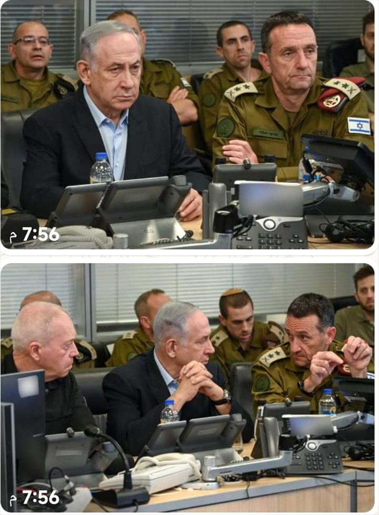 ونشرت وسائل الإعلام العبرية صورًا لرئيس وزراء إسرائيل، بنيامين نتنياهو، ورئيس الأركان هرتسي هاليفي، وهما يشاهدان تنفيذ الغارات على الحديدة.