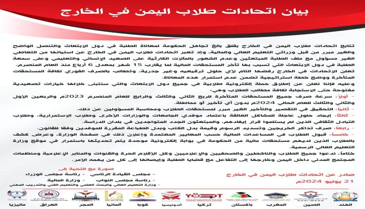 صادر عن اتحادات طلاب اليمن في الخارج.
