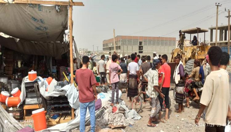 تواصل الحملة الأمنية لرفع الباعة من طريق صبرـ الوهط بلحج