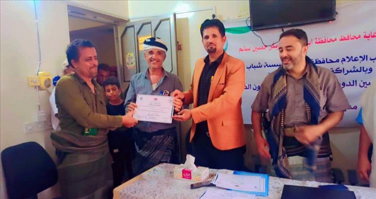 وفي ختام الدورة قام الدكتور ياسر باعزب مدير إعلام محافظة ابين ومدير عام مديرية مودية سمير الحييد ، والامين العام للمجلس المحلية عبدالناصر العزي وعضوي الهيئة الادارية بالمجلس المحلي احمد فضل السعيدي ، واحمد صالح الدئشة ورئيس مؤسسة نور الإبداع اسامة سميح بتوزيع شهادة المشاركة في الدورة التدريبية على المشاركين من الإعلاميين بالمنطقة الوسطى مودية لودر الوضيع.