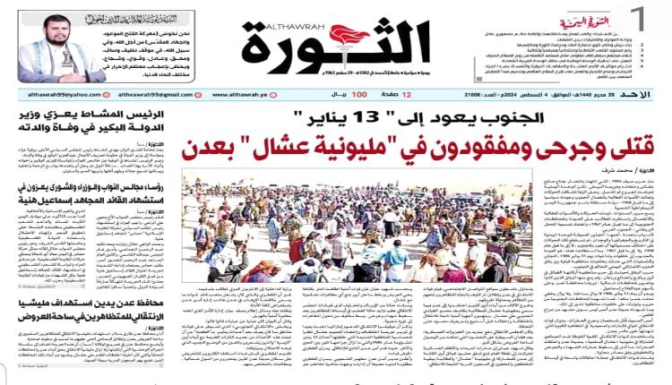 هذا هو اعلام الحوثي يظهر لكم وجهه القبيح وهدفه الخبيث في تجنيد الة فتنته الاعلامية و تاييده ودعمه بالمال عبر عملائه لهذا الاحتشاد ليس حبا بعشال بل استغلالا لقضية عشال في زعزعة الامن وشق الصف الجنوبي وهو ماظهر واضح في عنوان صحيفته الذي يستدعي فيها احداث 13يناير .