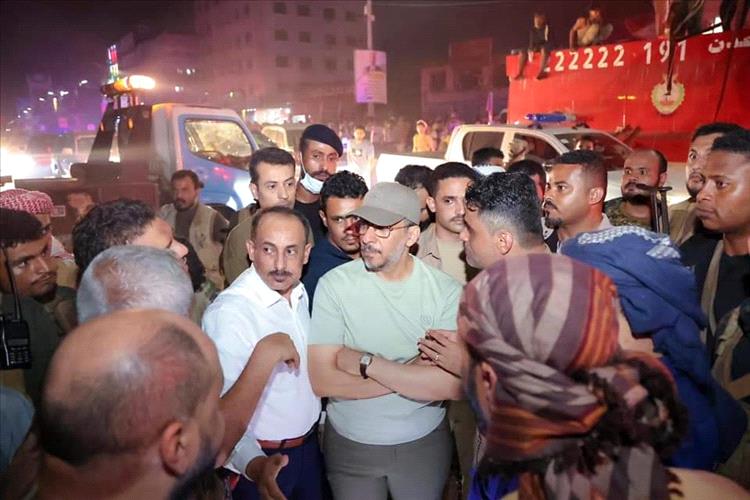 بن مبارك يعاين آثار الاضرار في انفجار إحدى محطات الغاز في عدن .. صور