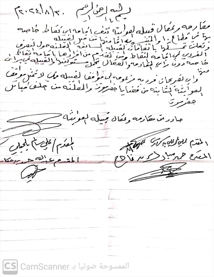 حلف بن حبريش يتبرأ من نقطة قبلية بقطاع 10 وسط خلافات تقاسم المصالح ( وثيقة )