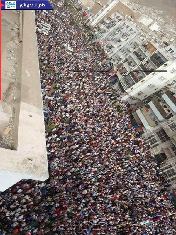 تظاهر مئات الآلاف من أبناء الجنوب الجمعة في وسط الشارع الرئيس بمديرية المعلا غرب عدن وذلك تلبية لدعوات اطلقتها قيادة المجلس الانتقالي الجنوبي للاحتشاد في عدن تحت شعار استمرار رفض الأحتلال.