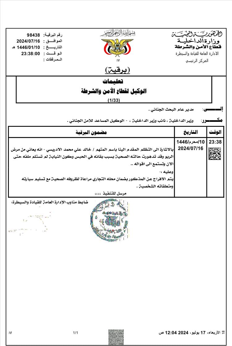 في جريمة هزّت وجدان اليمنيين، فارق خالد الإدريسي، مواطن يمني من أبناء محافظة إب، الحياة داخل سجن البحث الجنائي بصنعاء يوم السبت الماضي، بعد أربعة أشهر من الاعتقال التعسفي دون تهمة أو محاكمة.