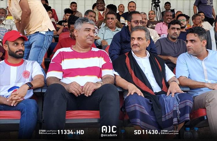 ونشرت القناة عبر حسابها على فيسبوك صور لمحافظ العاصمة عدن في مدرجات الملعب لمتابعة نصف نهائي بطولة كأس عدن.