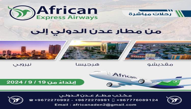 وكشفت الشركة طيران افريقيا عن رحلات مباشرة الى كل من مقديشو وهرجيسا الصوماليتين والعاصمة الكينية نيروبي ابتداء من 19 سبتمبر 2024م دون الكشف عن تفاصيل تتعلق بحجم من مطار عدن الدولي.