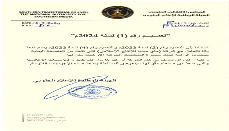 تعميم هام من الهيئة الوطنية للإعلام الجنوبي