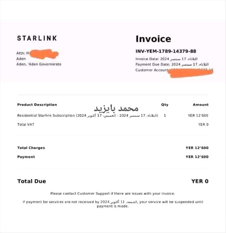 في تجربة أخرى، قام أحد المستخدمين بطلب شراء محطة ستارلينك جديدة، ودفع المبلغ المستحق عبر بطاقة ائتمان بنكية محلية، وأيضاً تم الخصم بالريال اليمني حسب التعرفة المعلنة على موقع الشركة الرسمي.