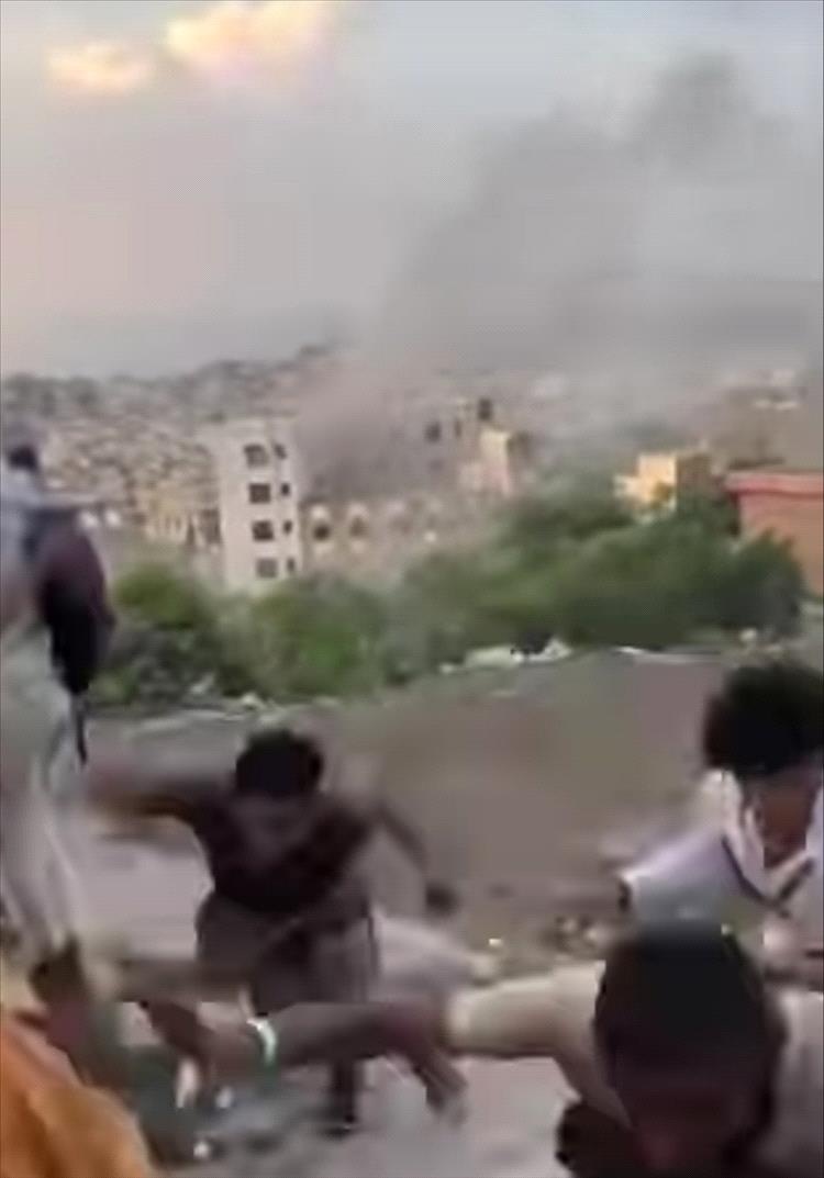 وتداول ناشطون مقاطع فيديو يكشف عن هلع المواطنين وهروبهم من الانفجارت التي تتطاير الي الشارع والبيوت جراء انفجار احد مخازن السلاح بالقرب من خليج الحرية وسط تعز.