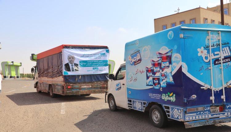 محافظ لحج يدشن قافلة إغاثية إنسانية للأسر النازحة في مديرية المسيمير