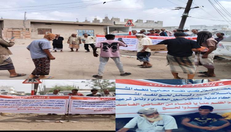 نظم أبناء إحدى قبائل محافظة لحج وقفة احتجاجية أمام محكمة الأموال العامة بالمحافظة احتجاج على ما اسموه إصرار القاضي منح أرضهم الواقعة في بير ناصر بالرباط الشرقي، لأحد المتنفذين تحت مسمى عقد استثمار رغم ملكهم لهذه الأرض أبا عن جد، مثبتة بأوراق ومسودات رسمية مقيدة بالسجل العقاري ومعززة بأحكام قضائية صادرة من المحاكم المدنية بداية بالمحكمة الابتدائية وانتهاء بالمحكمة العليا وجميعها تؤكد ملكيتهم لهذه الأرض.