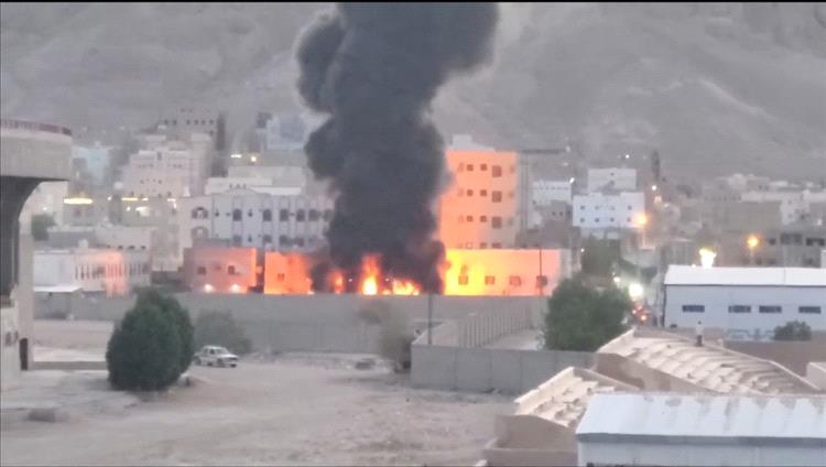 نشب حريق هائل في محطة كهرباء بسيئون وادي حضرموت، عقب إنفجار خزان في المحطة.