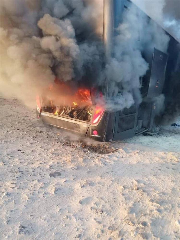 ووفقًا لمصادر متطابقة، بدأ الحريق في المحرك وامتد ليلتهم الحافلة بالكامل.