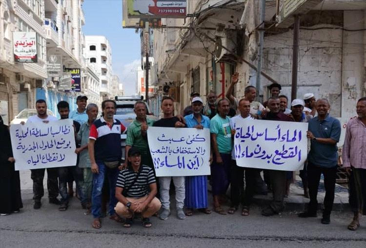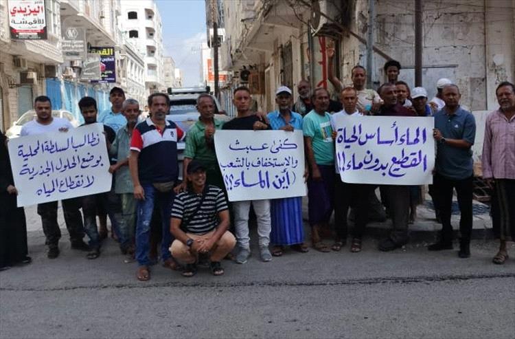 نظم العشرات من أبناء حي القطيع في مدينة كريتر صباح اليوم السبت وقفة احتجاجية تنديدا بسوء ضخ المياه الى الحي منذ أكثر من شهر