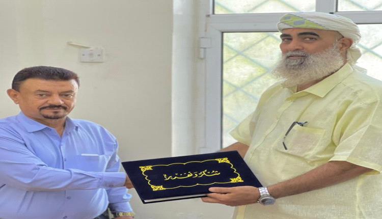 منح مدير دائرة الامداد والتموين مدير القاعدة الادارية بالعاصمة عدن العميد علي محمد الكود، اليوم، درع الوفاء والتقدير الى مدير عام مصلحة الهجرة والجوازات والجنسية فرع خور مكسر العميد صالح ناصر عاطف الحكمي.