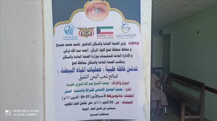 دشنت صباح اليوم في مستشفى ابن خلدون بمحافظة لحج عملية التسجيل للقافلة الطبية المجانية لاجراء عمليات ازالة المياه البيضاء.
