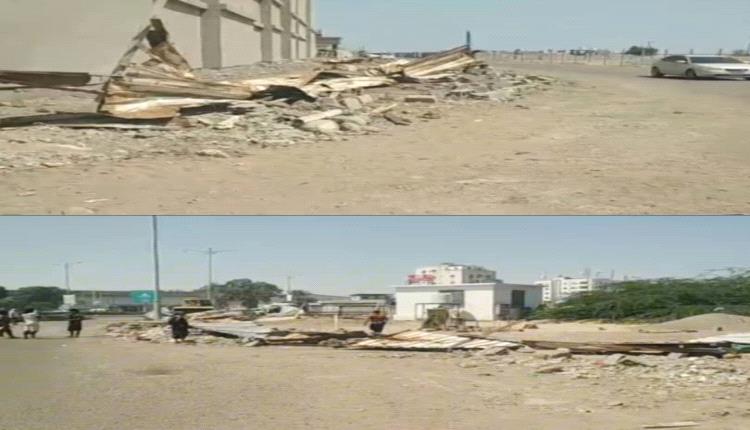 بتوجيهات من المقدم / كمال الحالمي ، نفذت وحدة حماية الأراضي صباح اليوم الأربعاء إزالة لبناء عشوائي بمديرية الشيخ عثمان بعدن.