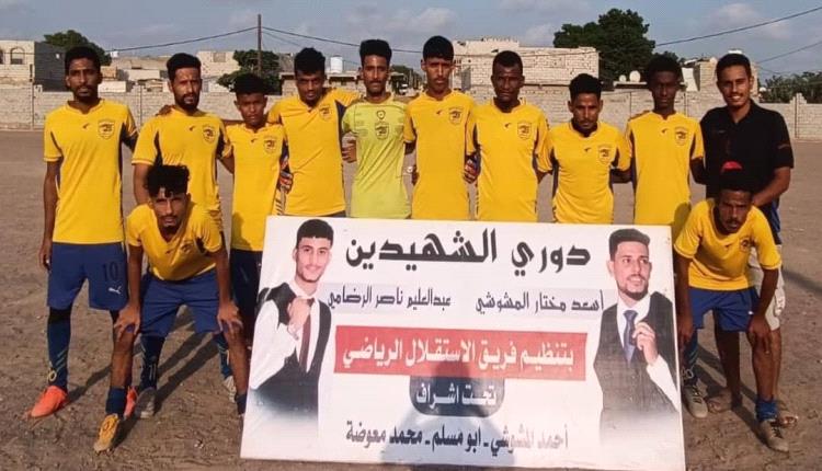تمكن فريق الشهيدين من الفوز على فريق نمور بئر احمد بركلات ترجيح بعد التعادل بالنتيجة السلبية في المباراة التي أقيت عصر اليوم ضمن منافسات و مباريات الدور الاول لبطولة الشهيدين أسعد مختار المشوشي وعبدالعليم ناصر الرضامي المقامة على ملعب بئر أحمد الكبير بنظام خروج المغلوب والتي تقام بأشراف فريق الاستقلال الرياضي وبتنظيم من قبل الكابتن أحمد المشوشي وابومسلم و محمد معوضه بمشاركة فوق 64 فريق شعبياً من محافظة أبين ولحج والعاصمة عدن.