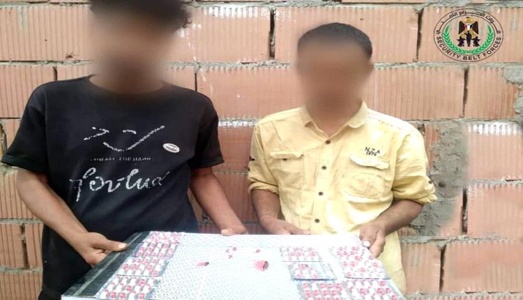 تمكنت قوات الحزام الأمني في محافظة لحج من ضبط شخصين وبحوزتهما حبوب مخدرة في نقطة الحسيني شمال مدينة الحوطة عاصمة المحافظة .