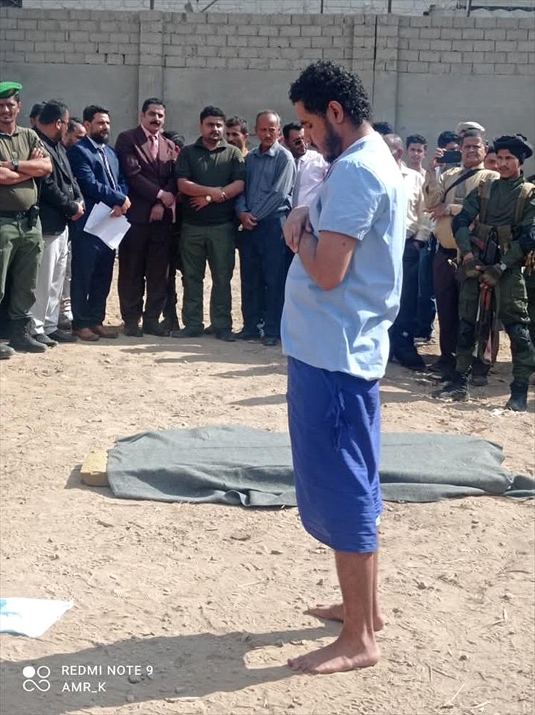 وبعد أستكمال تلك الإجراءات وجه النائب العام القاضي قاهر مصطفى علي بتاريخ 2024/9/9م بإستكمال إجراءات التنفيد، وبعد تلاوة منطوق الحكم من قبل وكيل النيابة الجزائية الإبتدائية المتخصصة محافظة عدن القاضي عبدالله محمد ناصر لصور، تم التنفيد بحضور رئيس نيابة إستئناف الجزائية المتخصصة محافظة عدن القاضي أنيس ناصر علي عُبادي، ووكيل نيابة السجن المركزي القاضي ناصر مدهش، ومدير السجن المركزي نقيب اليهري، وأولياء دم المجني عليه وعدد من من أفراد الأمن و المواطنين.