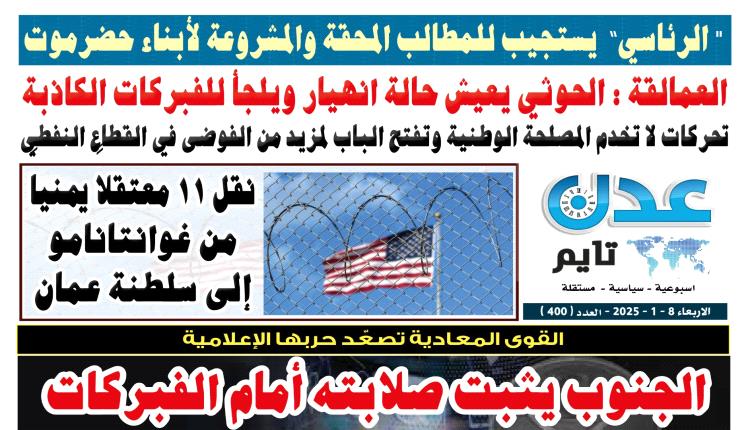 تصفح العدد الإلكتروني لـ #صحيفة #عدن_تايم الورقية .. عدد رقم 400