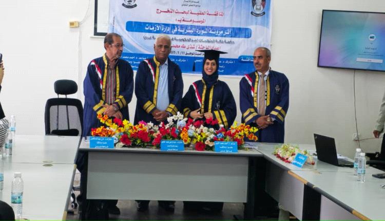 منحت جامعة عدن اليوم درجة الماجستير بامتياز في ادارة الأعمال كلية العلوم الإدارية للباحثة شذى طه الحبيشي، عن رسالتها الموسومة " أثر مرونة الموارد البشرية في ادارة الأزمات" دراسة حالة المنظمات غير حكوميه في محافظة عدن.