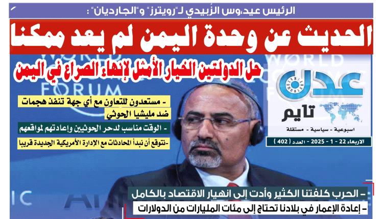 تصفح صحيفة عدن تايم بعددها رقم 402 الالكتروني .