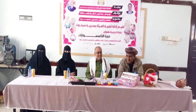 دشن القائم بأعمال الأمين العام للمجلس المحلي بمديرية سيحوت الأستاذ عبدالله عوض باعبده، اليوم السبت، بقاعة مدرسة أروى، دورة الأكسسوارات التي تنظمها إدارة تنمية المرأة بالمديرية للدارسات بمركز محو الأمية بسيحوت، برعاية محافظ محافظة المهرة، وإشراف الإدارة العامة لتنمية المرأة بالمحافظة، وبالتنسيق مع السلطة المحلية بالمديرية، وبحضور مديرة إدارة تنمية المرأة الأستاذة أوسان عقيل باعباد، ومدير إدارة محو الأمية بسيحوت الأستاذ محمد أحمد ربيّع.