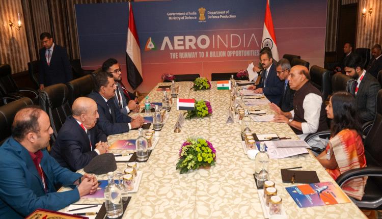عقدت جلسة المباحثات صباح يومنا هذا الأربعاء ١٢ فبراير في مدينة بنجلور على هامش معرض آيرو إنديا 2025 بين الجانبين اليمني والهندي برئاسة معالي وزير الدفاع الفريق الركن محسن محمد الداعري ومعالي السيد/ راجنات سنج وزير الدفاع في جمهورية الهند.