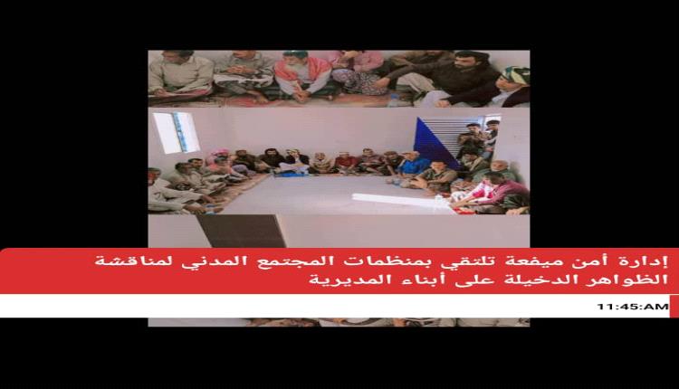 في إطار العمل المشترك بين الأجهزة الأمنية ومنظمات المجتمع المدني، التقى مدير شرطة مديرية ميفعة، المقدم ناصر رويس العولقي، ونائبه النقيب فهمي مقبل ناصر لكرش باعوضة ومدير البحث الجنائي بالمدير عبدالعزيز عوض لصحر اليوم الجمعة، بمنظمات المجتمع المدني الممثلة بعقال الحارات ومشايخ وأعيان ووجهاء المديرية لمناقشة جملة من القضايا، أهمها ظاهرة السرقة التي ظهرت في الأيام الماضية، وكذا ترويج الشبو والمخدرات بأنواعها وأشكالها.